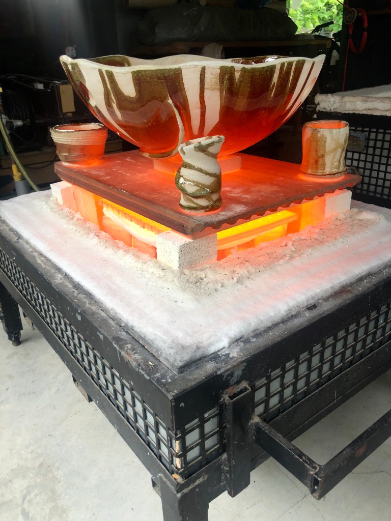 The pot was then placed in the kiln and heated to nearly 1000 degrees centigrade. We waited and talked as I anxiously paced waiting to see whether the piece would survive…